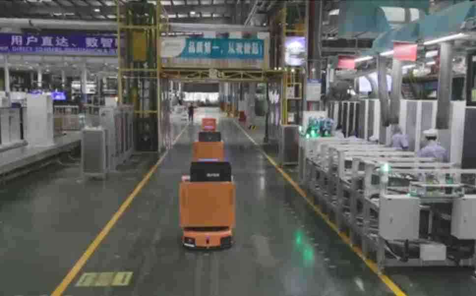 为车载冰箱物流配送打造的智能解决方案,,,包含产中物流通过潜伏举升AMR搬运至线边,,,产后成品物流智能仓储,,,流程包含产中物流智能齐套入库,,,线边安灯叫料AMR智能配送至线边,,,,成品入库、、、、出库,,,通过无人堆高车机器人,,智能仓储管理替代人工作业管理,,实现更高存储、、更高效率、、、、更具柔性化的解决方案。。。